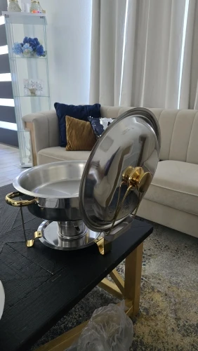 Add elegance and functionality to your next event with this stylish chafing dish set. Designed with a luxurious gold finish, it instantly elevates buffets, parties, and weddings while keeping food warm and ready to serve. The 5QT capacity holds generous portions for 4 or more guests, and its durable stainless-steel construction ensures easy cleanup and long-lasting shine. Perfect for both indoor and outdoor gatherings, it combines beauty, efficiency, and convenience in one sleek design.